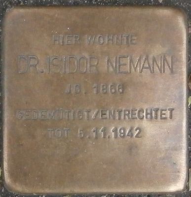Stolperstein dedicated to Isidor Nemann, Stolperstein in Hamburg-Neustadt
