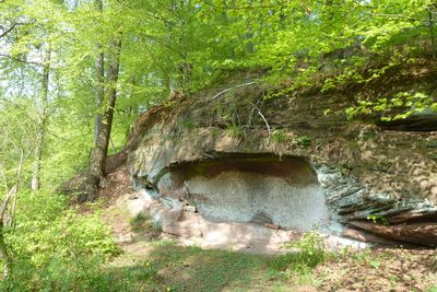 Bürgergrotte is a sandstone cave carved into natural rock formations located between Benniehausen and Niedeck in the Gleichen municipality. The interior displays the layered structure typical of the region's geology and opens into a small forest clearing.