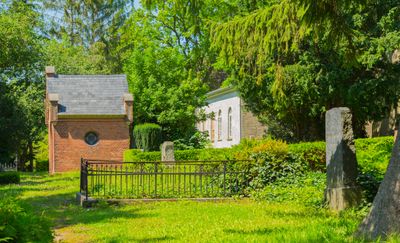 Visitors can access the cemetery grounds through the main entrance gate, where information boards provide details about notable graves and opening hours.