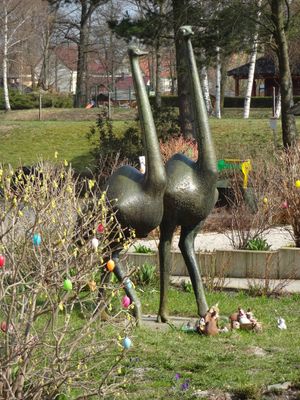 Strauße, Plastik in Senftenberg, Brandenburg