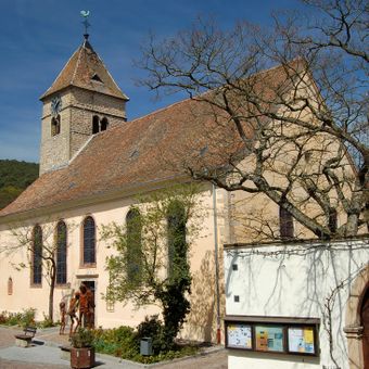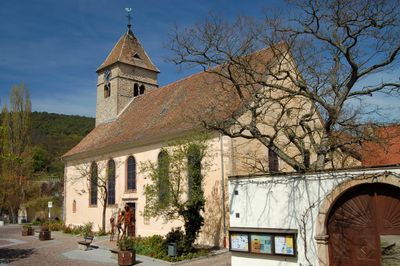 The Protestant Church features a Romanesque tower from the 12th century and a Baroque hall structure completed in 1723 with an extension from 1803.
