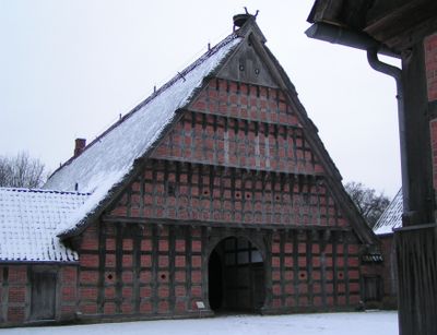 Visitors can explore this historical farm complex within the Museumsdorf Cloppenburg, which spans across 15 hectares and contains over fifty structures from different periods.