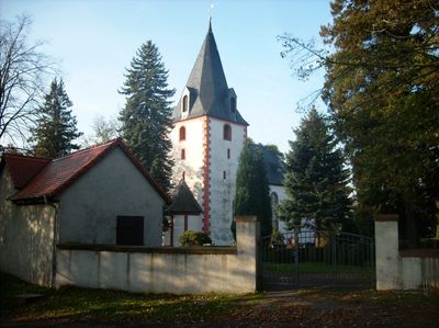Kirche Obergräfenhain, Chorturmkirche mit Halbkreisapsis, baugeschichtlich und ortsgeschichtlich von Bedeutung