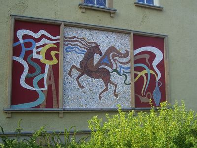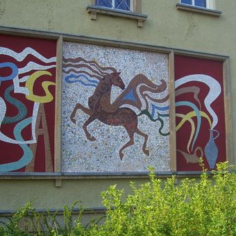 Mosaik Pegasus, Mosaik von Hildegard Sauer in Senftenberg, Brandenburg