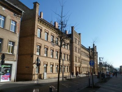 The former barracks now functions as a shopping center called Husarenmarkt, containing retail spaces and offices in central Neustrelitz.