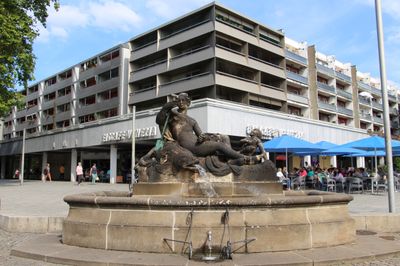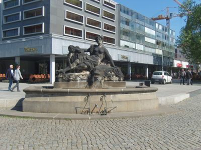 Built in 1908, this fountain was designed by architect Wilhelm Kreis and sculptor Bruno Fischer, who crafted the main figure from Tyrolean marble.