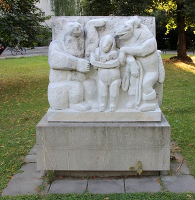 Wolf, Sheep and Bear, sculpture in Berlin-Prenzlauer Berg, Germany