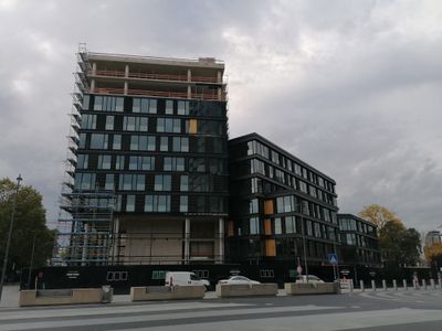 Construction began in 2020 after demolishing the Lower Saxony State Representation building from 1990 and two historical villas at numbers 24 and 26.