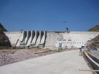 The reservoir created by the main dam and two auxiliary saddle dams holds 12.57 billion cubic meters of water for power generation and irrigation.