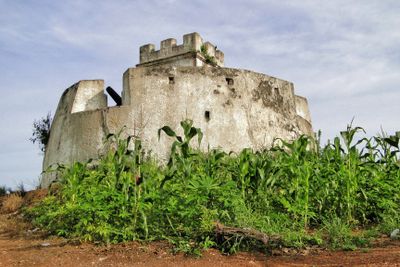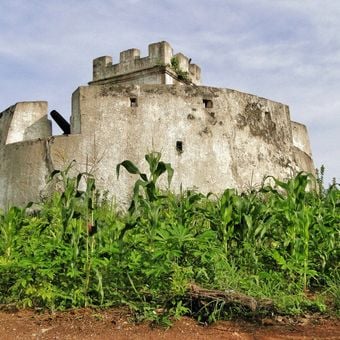 Fort Victoria stands on a hillside in western Cape Coast, offering surveillance positions over the Atlantic Ocean and the surrounding township.