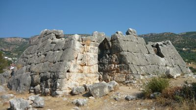 The pyramid stands along the ancient road connecting Argolida with Arcadia, providing clear views of the Argolic Gulf and coastal plain.
