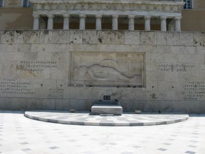 Tomb of the Unknown Soldier, Athens, War memorial at Syntagma Square, Athens, Greece.