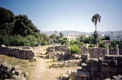 The site includes remnants of sanctuaries dedicated to Aphrodite and Hercules, plus sections of ancient housing blocks built according to the Hippodamian plan.