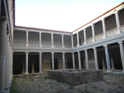 Casa Romana spans 36 rooms organized around three courtyards with fountains, displaying ancient Roman architectural techniques through its columns and porticos.