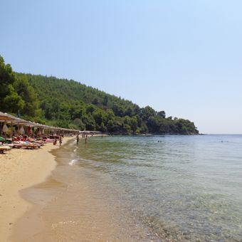 The beach is accessible by regular bus service from Skiathos Town, with the ride taking around 25 minutes along the coast. The frequent connections make it easy to visit at different times of day.