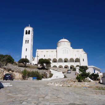 Visitors can reach the church through Line 2 buses departing from Chora to Koronos, with regular services throughout the day.