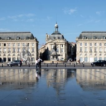 Bordeaux is a city on the Garonne River in Nouvelle-Aquitaine, southwestern France. The central area displays 18th-century limestone facades, tree-lined boulevards, and public squares that spread from the train station to the waterfront over several kilometers.