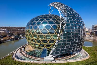 The former Renault production site Île Seguin, a river island, was converted after decades of vacancy into the Cité Musicale, housing concert halls and a contemporary art museum since 2017. The Seine-Musicale features a movable solar sail that shades the main auditorium and tracks the sun daily.