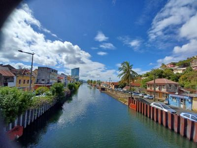 Fort-de-France sits on the western coast of Martinique and spreads along a sheltered bay, where a waterfront promenade looks out onto the Caribbean Sea. The downtown area centers around Rue de la République with its colorful colonial buildings and shaded avenues.
