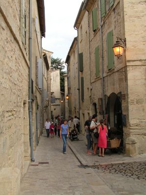 Located in southern France, Uzès features white limestone buildings, narrow streets, and a central square surrounded by Renaissance architecture and arcaded houses.