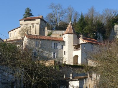 The castle stands on a limestone ridge, providing surveillance over the Dronne valley and the village from its elevated position.