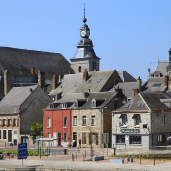 Givet is a commune along the border with Belgium in the Ardennes that extends across both banks of the Meuse River. Here stand stone buildings and fortified structures that shape the landscape of northern France.