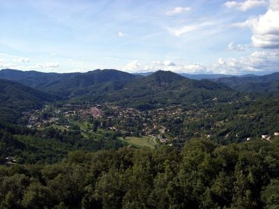 Robert Louis Stevenson completed his donkey journey here in 1878, commemorated by a fountain marking the end point of the current GR 70 hiking trail.
