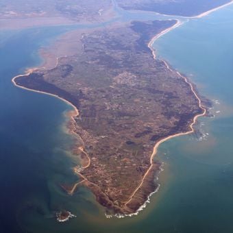 The second-largest French island spans 175 square kilometers with sandy beaches, pine forests, and salt marshes along the Bay of Biscay coast.