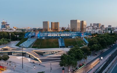 Accor Arena is a multi-purpose sports venue in the Bercy district of eastern Paris, France. The facility takes the form of a truncated pyramid with grass-covered exterior slopes and holds up to 19,400 spectators for sporting events and concerts.