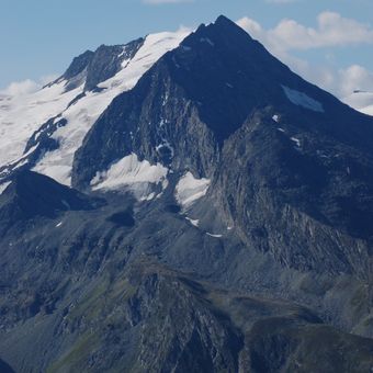 The Grand Bec rises to an elevation of 3,398 meters, featuring steep rock faces and exposed ridges composed primarily of mica schist formations.