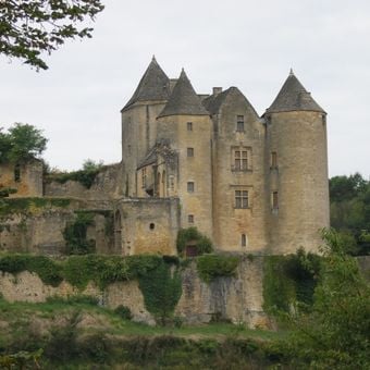 The stone castle stands on high ground between Brive la Gaillarde and Sarlat la Canéda, controlling the northern border of Périgord Noir region.