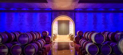 The estate produces approximately 4,500 cases annually, with grapes processed in 22 concrete vats corresponding to specific vineyard plots for precise vinification.