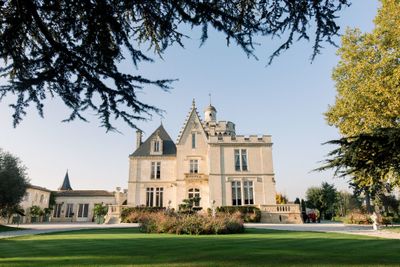 The Château Pape Clément encompasses 30 hectares of vineyards surrounding a grand stone mansion with classical architectural elements and intricate stone carvings.