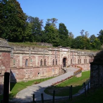 The architecture combines Vosges sandstone and bricks from Rust and Achenheim, representing the military construction techniques of the 19th century Franco-German border.