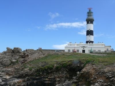 Phare du Creach, Stone lighthouse in Ouessant, France.