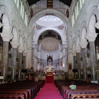 The basilica, constructed between 1886 and 1924 by architect Victor Laloux, stands in the city center on rue Néricault-Destouches with free entry for visitors.