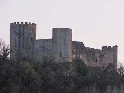 The Château des Rois ducs stands on a rocky outcrop overlooking the Lémance and Sendroux valleys, featuring limestone walls and defensive structures.