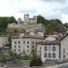 The castle features twin towers on its western side and incorporates a Romanesque chapel with ornate Lombard arches on the southern facade.