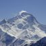 The mountain presents a distinctive pyramidal silhouette that emerges above the surrounding valleys, featuring a permanent glacier on its northern face.