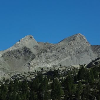 Trois-Évêchés is a mountain peak in the French Alps located within the Provence-Alpes-Côte d'Azur region at an elevation of around 2,800 meters. Multiple hiking trails lead to its summit, which offers views across several valleys below.