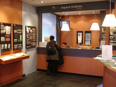 A specialized philatelic counter within the museum provides cancellations specifically designed to match current temporary exhibitions.