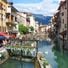 Multiple bridges cross the Thiou, connecting different sections of Annecy while providing access to restaurants and shops along its banks.