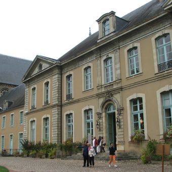 The abbey complex contains Notre-Dame-de-la-Couture Church, ground floor galleries with a former cloister, and a grand staircase within stone walls.