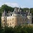 Gallerande Castle features a main building with a wing, four cylindrical towers and two square towers surrounded by wooded grounds.