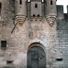 The northern facade of Château de Javon features a semicircular arched portal crowned by a Renaissance gable and decorated with ornamental crenellations.
