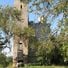 The castle ruins stand on a hill 1 kilometer west of the village, featuring a rectangular structure with two distinctive towers.