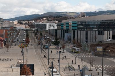 The Châteaucreux neighborhood extends across 60 hectares of urban space, featuring modern office buildings, residential complexes, and a central railway station.