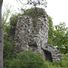 The castle stands on a rocky outcrop with two remaining curtain walls and an eastern tower, rising 40 meters above the village below.
