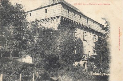 The rectangular stone structure of Château de la Grange features a defensive walkway with granite merlons and eight windows with pink sandstone mullions.