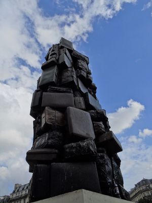 Located in front of Saint-Lazare Station, the sculpture functions as a meeting point for travelers and pedestrians in the Cour de Rome.